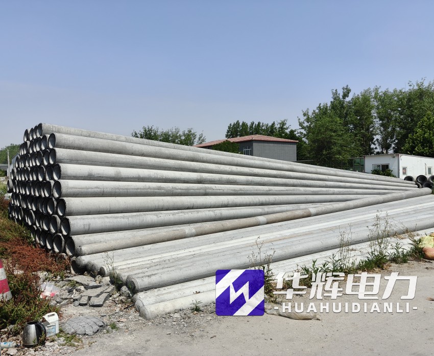 8米东河镇水泥电线杆通常采用钢筋混凝土离心成型工艺,杆体呈锥形结构,梢径150mm-190mm,根径230mm-270mm,壁厚40mm-50mm。根据标准GB/T4623-2014,产品混凝土强度等级不低于C40,主筋采用HRB400级钢筋,配筋量根据抗裂弯矩要求设计,标准抗裂弯矩可达12-18kN·m,破坏弯矩不小于24kN·m。杆体重量约0.5-0.8吨,运输安装便捷,适合人工或小型机械施工。